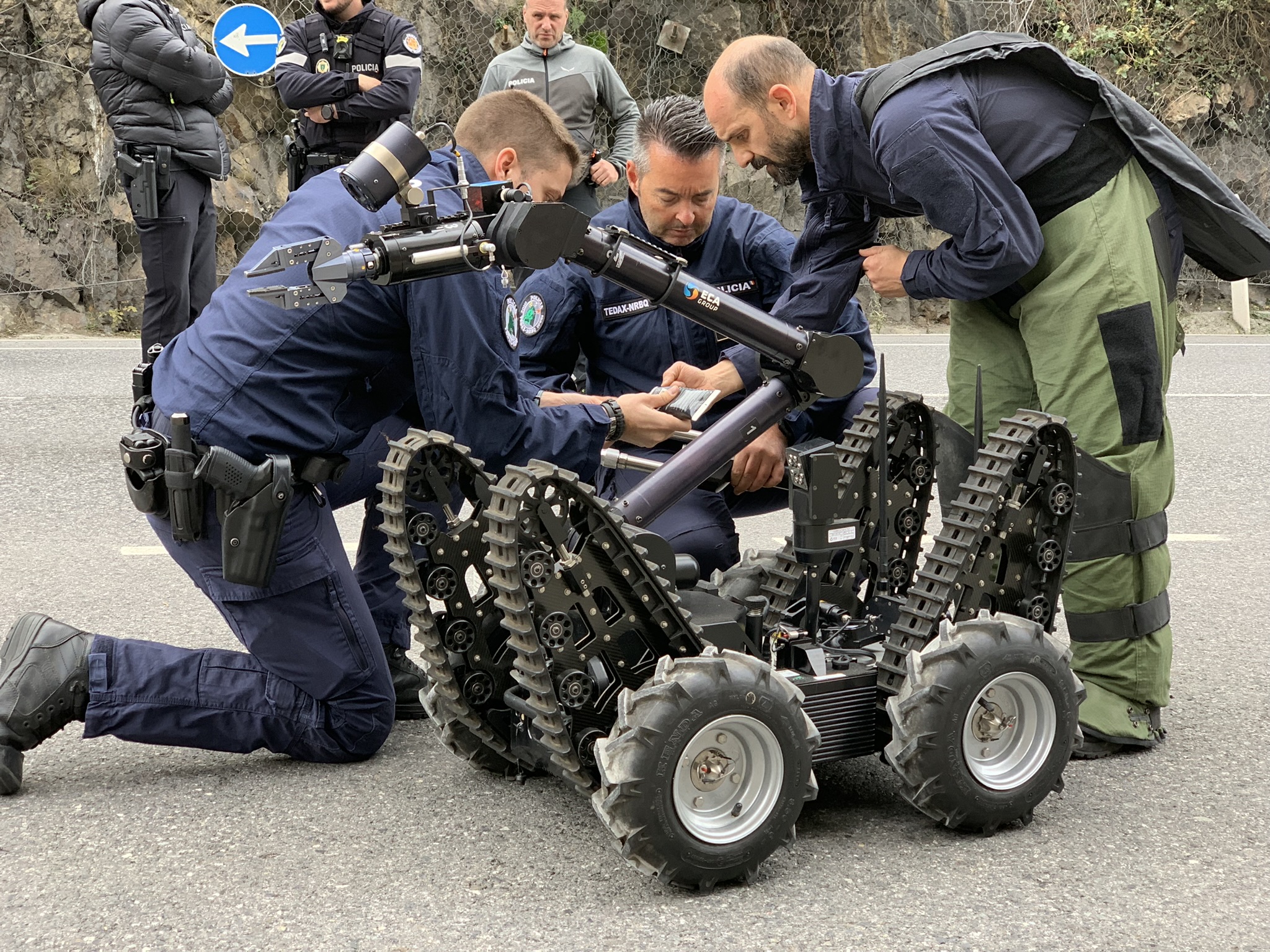 Amb l’ajuda del gos policia s’ha confirmat que es tractava d’un explosiu i aleshores s’ha avisat Bombers i SUM perquè es desplacessin. Mentre arribaven, un agent del TEDAX-NRBQ s’ha preparat per desplegar l’equip per analitzar l’artefacte i, tot seguit, s’ha enviat el robot de desactivació d’explosius per neutralitzar-lo amb seguretat. Posteriorment, els TEDAX-NRBQ han fet una darrera verificació.